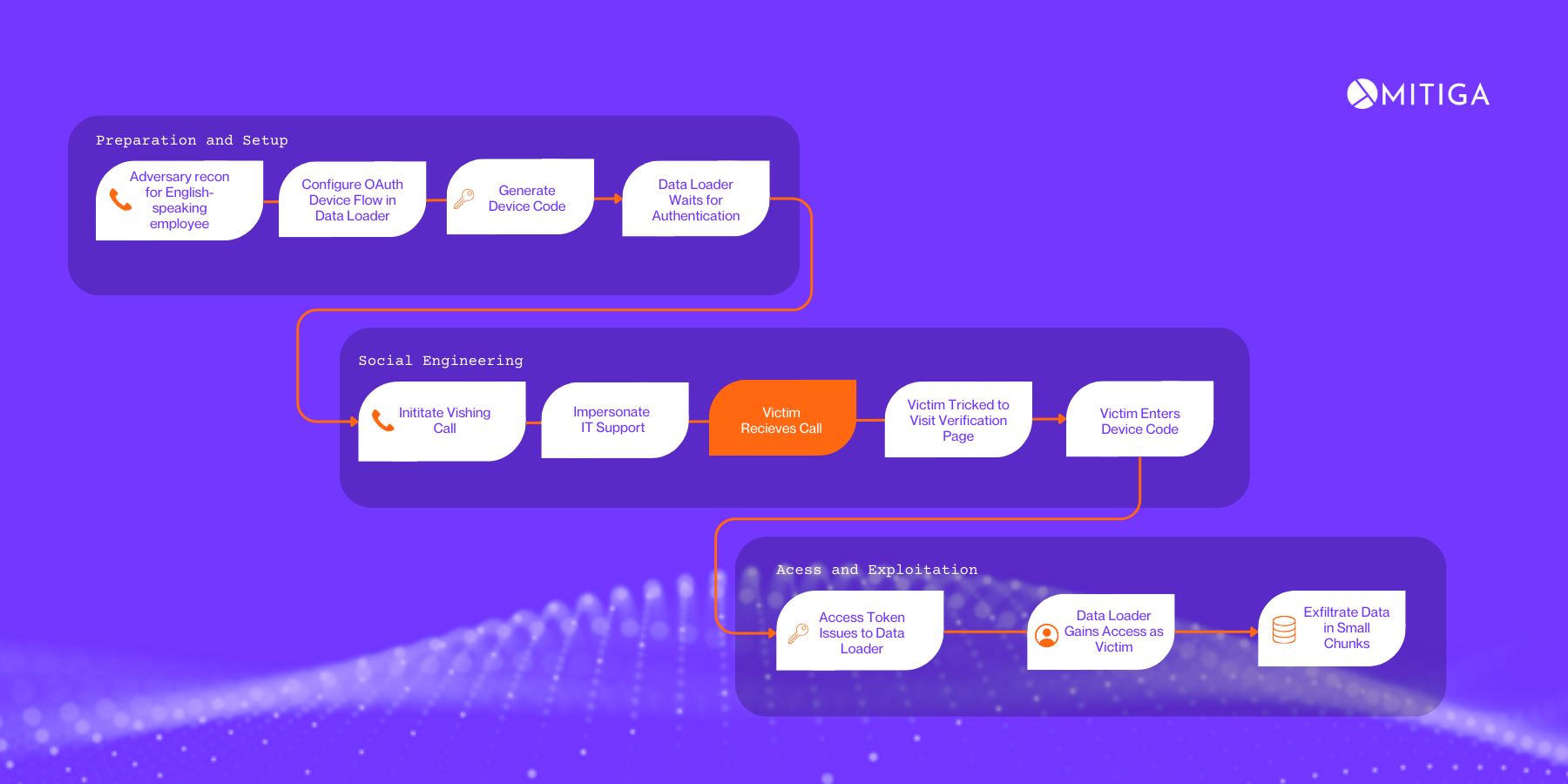 The attack path for UNC6040 starts with vishing and requesting user credentials. Upon access they extract data using Salesforce's Data Loader application. UNC6040 also uses salesforce apps hosted on Okta phishing panel to trick victims to visit from their work computer. To read more check this page.