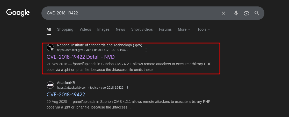 - Finding vulnerability for Subrion V4.2.1
