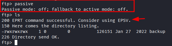 • It is entering in extended passive mode. We need passive mode in ftp. Enter passive to execute commands